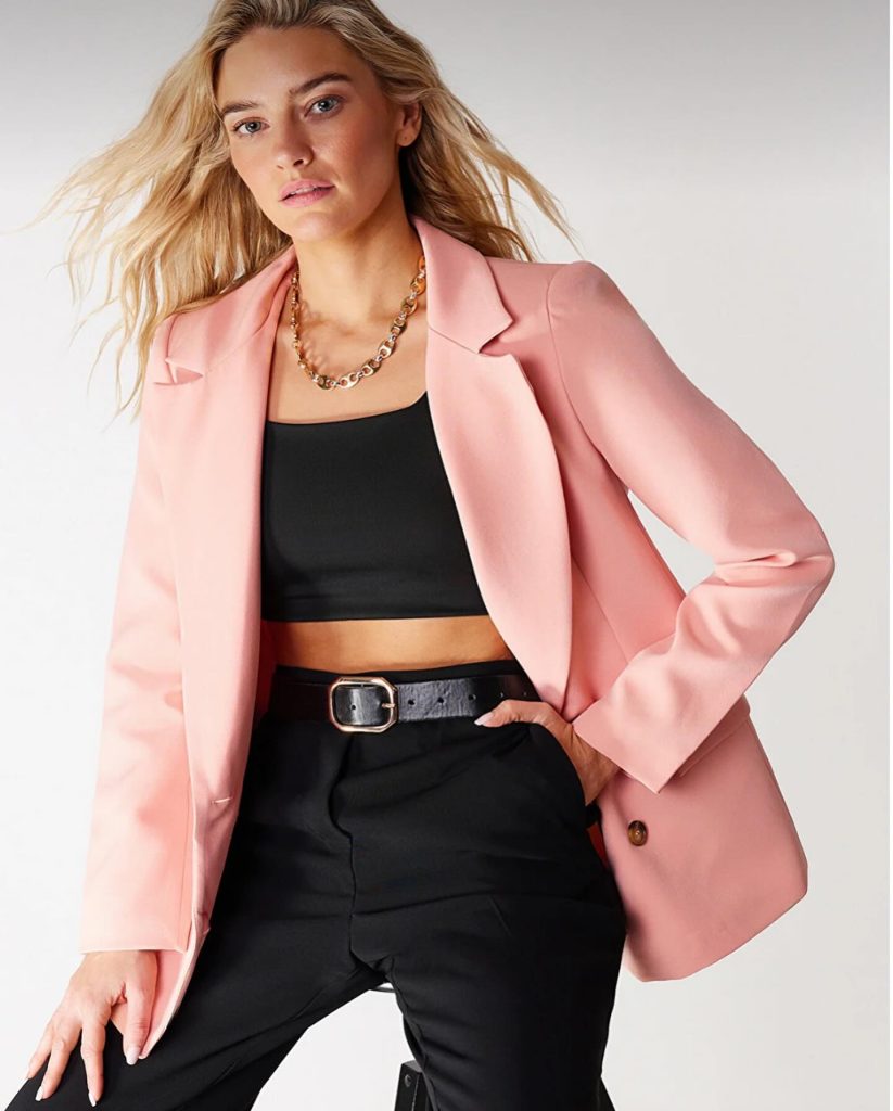 Minimalist doesn’t mean boring. A sleek black blazer dress can be transformed with the right pink accessories—think pink heels, a pastel crossbody, or bold pink earrings. This look screams boss energy with a dash of fun. I styled this for a networking event and felt both powerful and approachable. You can even layer sheer pink tights for an unexpected twist. Keep your makeup neutral with a pop of pink gloss to echo your accessories.
