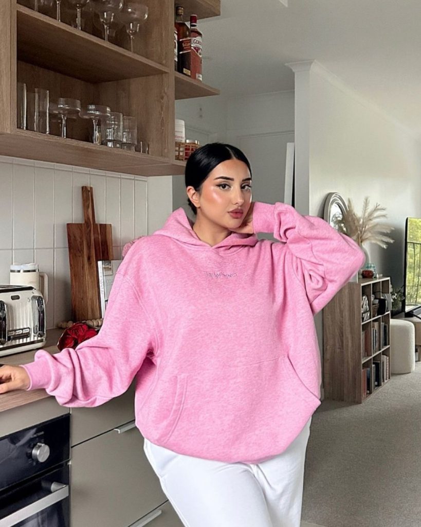 Athleisure just got a glam update. A soft pink hoodie paired with black biker shorts is my go-to for airport days or quick coffee runs. It’s laid-back without being sloppy. Choose a hoodie with fun details like puff sleeves or embroidery for a more elevated feel. Add chunky sneakers and oversized shades to nail that street-style aesthetic. You can even layer with a puffer vest or crossbody fanny pack for added flair.