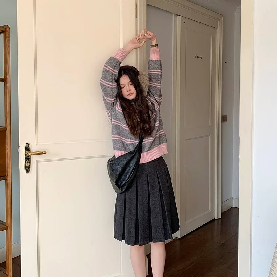 Matching knit sets are having a major moment, and mid-size bodies wear them beautifully. Think ribbed tops with wide-leg knit pants or midi skirts. They’re comfy enough for lounging yet elevated enough to wear out with heels or a trench coat. I always choose sets in neutral tones—beige, charcoal, mocha—for that sophisticated feel. This outfit type is the definition of cozy chic and makes for a fantastic gift idea for anyone who loves comfort with style baked in.