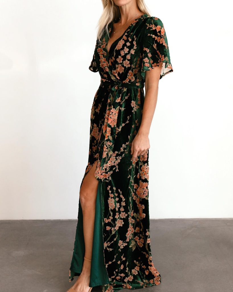 6. Velvet Dark Green Wrap Dress for Holiday Glam