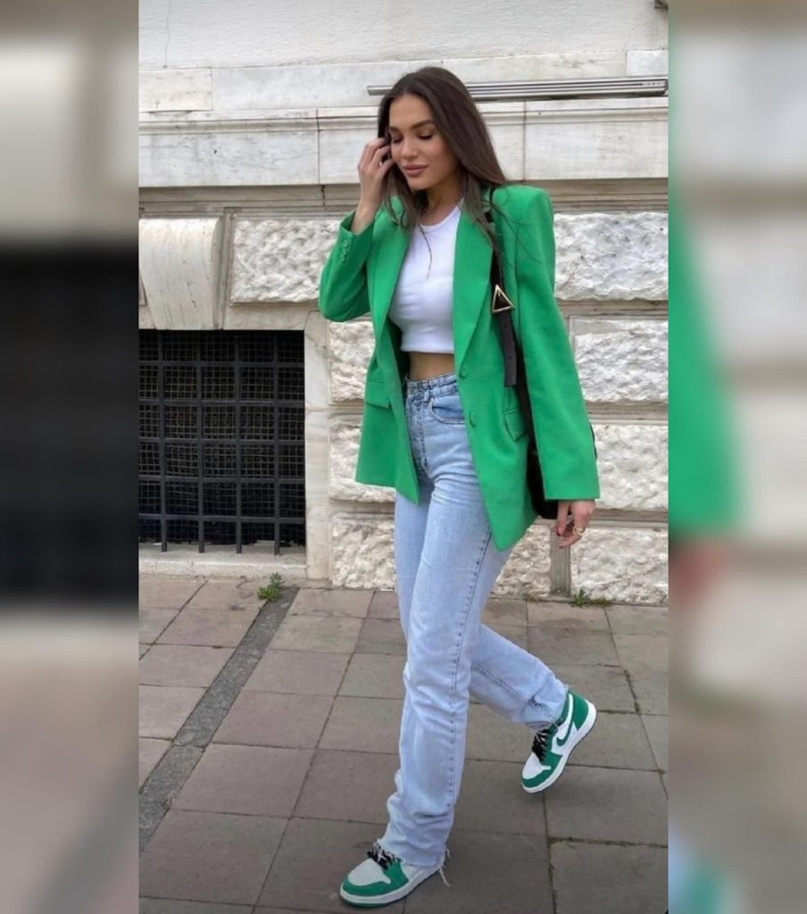 This combo is perfect for the woman who wants to blur the lines between streetwear and sophistication. A dark green structured blazer over a graphic tee brings together polish and personality. Pair it with distressed jeans or faux leather leggings and some chunky sneakers or ankle boots. This look transitions well from casual Fridays at work to spontaneous evening plans. It also makes an excellent back-to-school or birthday gift for teens and young adults who love expressing themselves through bold pieces.