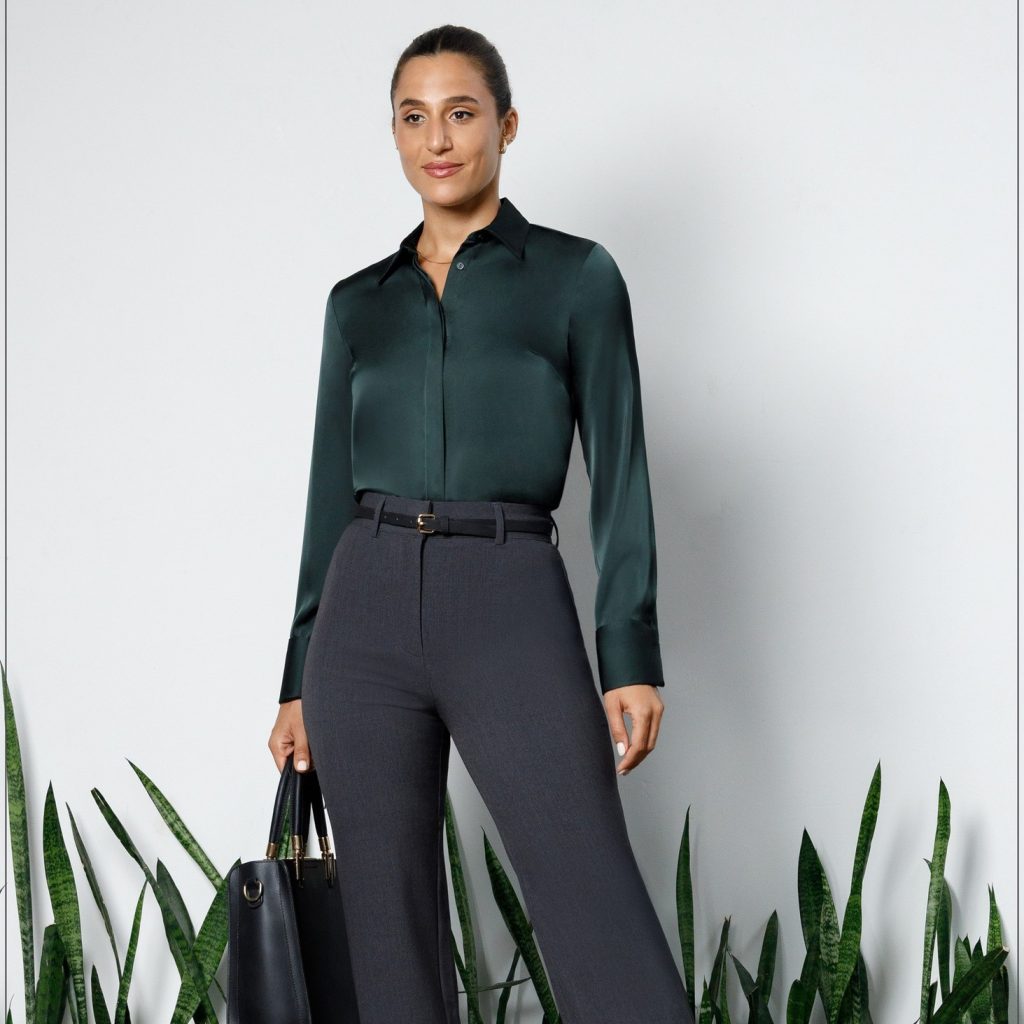 Yes, leather pants in dark green exist—and they are everything. Pair them with a champagne or ivory satin blouse for a night-out look that screams modern luxury. Add heeled boots or stilettos, and you’ve got a bold, fashion-editor vibe. Faux leather versions are both budget-friendly and breathable. This combo is ideal for the fashion risk-taker in your life who loves pieces that pop without being loud.
