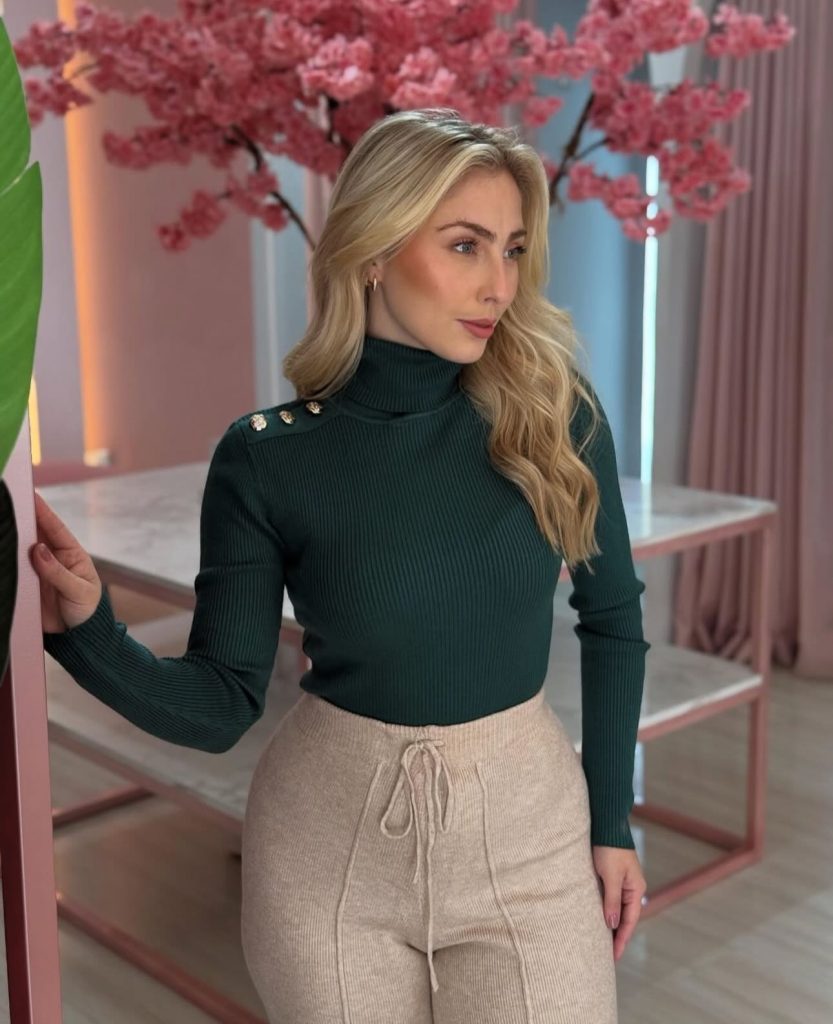 7. Dark Green Turtleneck with High-Waisted Trousers