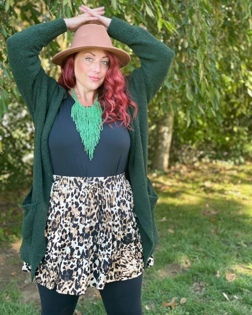 Layering a dark green cardigan over a floral dress is my favorite way to bring summer pieces into fall. It softens the outfit while adding a cozy element. Choose a chunky knit or one with buttons for versatility. Add ankle boots and a crossbody bag for weekend charm. This is a wonderful gift for those who love romantic, cottagecore-inspired style. Bonus points if the cardigan is oversized enough to double as a light jacket.