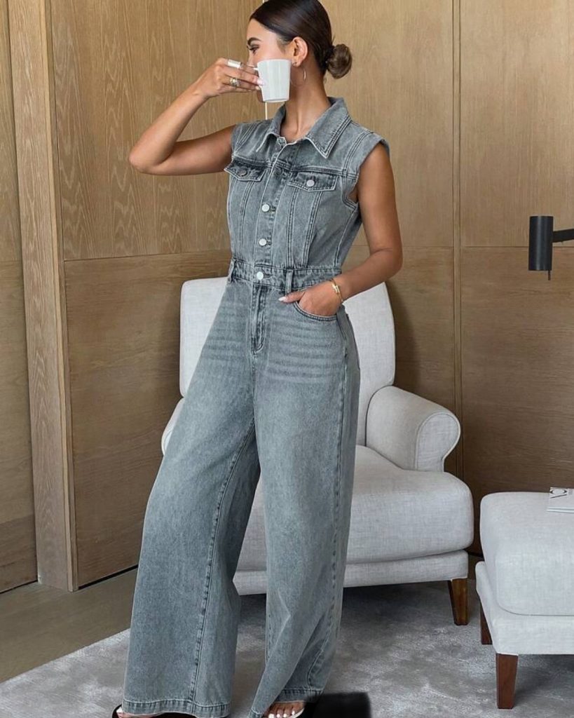 17. Sleeveless Denim Jacket Over a Jumpsuit