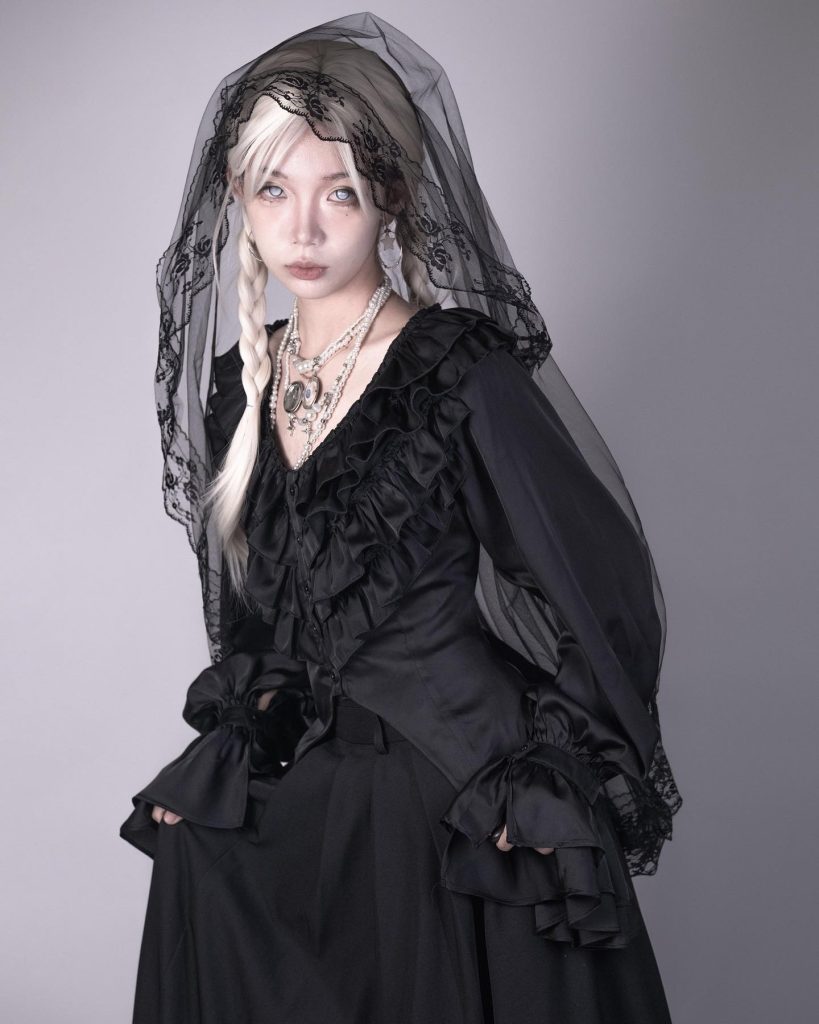 For those who lean into the romantic side of goth, a ruffled blouse with a tie-neck and puff sleeves offers an elegant, vintage feel. Made from lightweight fabric like chiffon or satin, it breathes while maintaining that luxurious aesthetic. Perfect tucked into wide-leg pants or a high-waist skirt. These blouses often come in deep jewel tones as well, like burgundy or emerald, making them great for gifting with color flexibility. They work for both casual and formal occasions and can easily be dressed up or down. This is a go-to for soft goths and dark academia lovers alike.