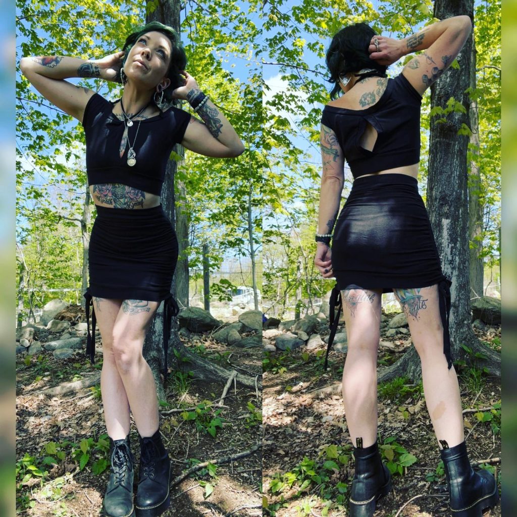A staple with staying power, a black denim mini skirt adorned with studs, rips, or chains brings punk flair to a classic piece. It’s breathable, stylish, and endlessly pairable with tank tops, mesh layers, or even hoodies. Gifting this is like giving someone a blank canvas for endless gothic summer outfits. Make sure to choose a skirt with a bit of stretch for comfort. Top it off with a belt and oversized sunglasses for an edgy, on-the-go outfit.