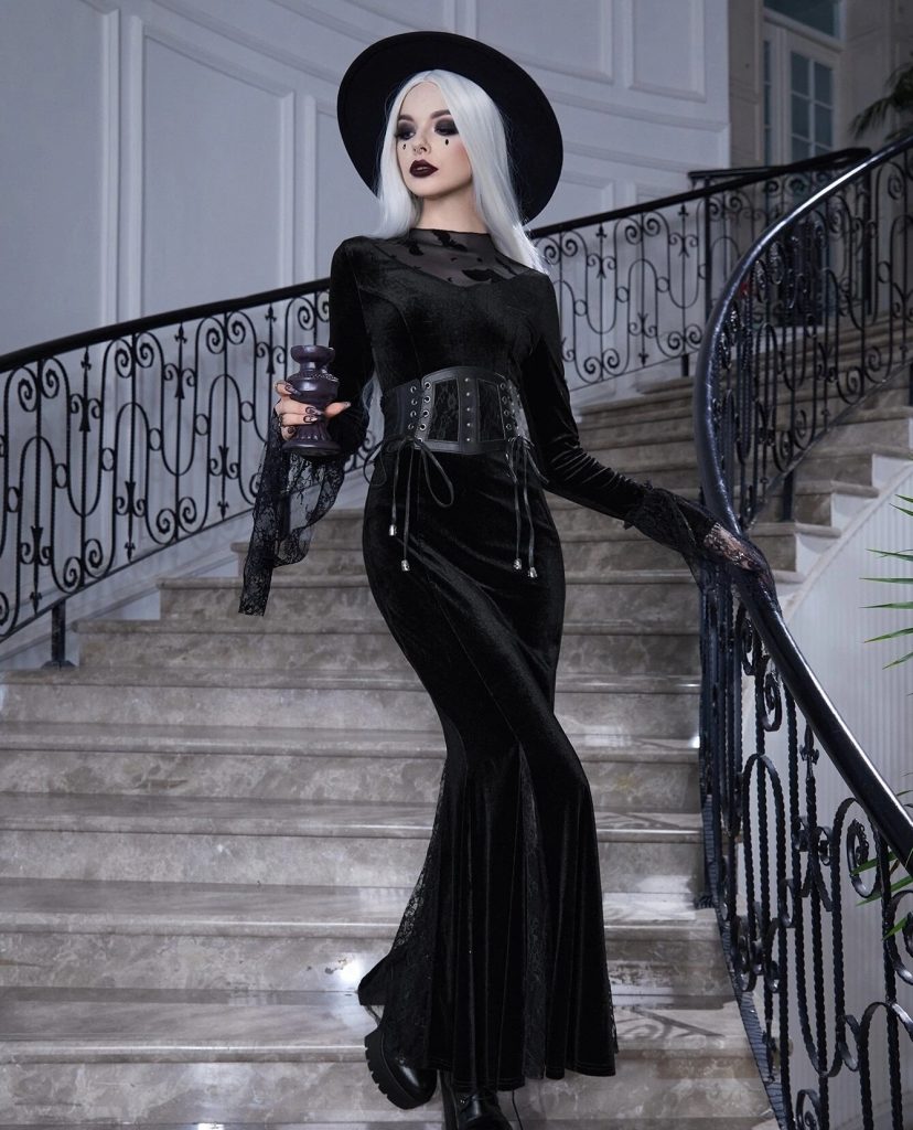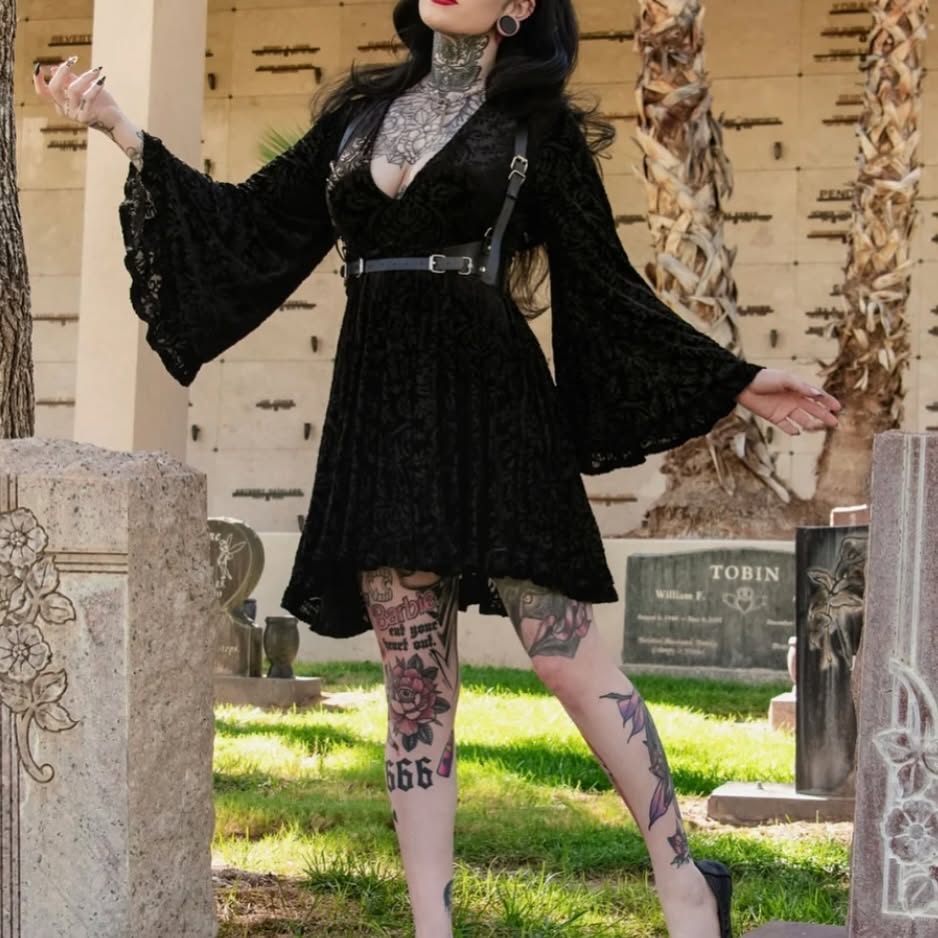 The babydoll dress gets a dark makeover with sheer bishop sleeves, velvet textures, or moon motifs. This silhouette is flattering on most body types and is comfortable enough for all-day wear. A sweet but spooky choice that can be styled up with tights and boots or worn barefoot in a field. A fantastic gift option because of its universal appeal and sizing forgiveness. Whether for birthdays, festivals, or summer photo shoots, it’s the kind of dress that delivers charm with a shadow.