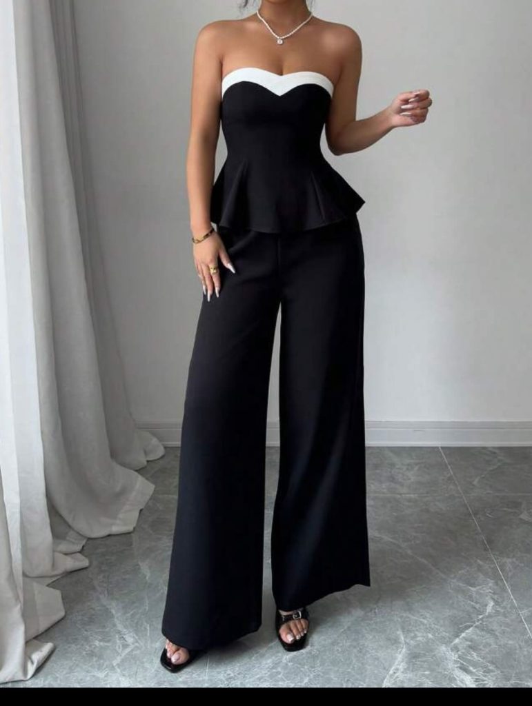 13. Black Wide-Leg Pants with Silver Zipper Accents